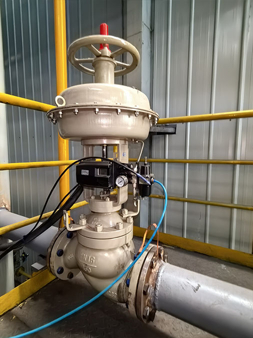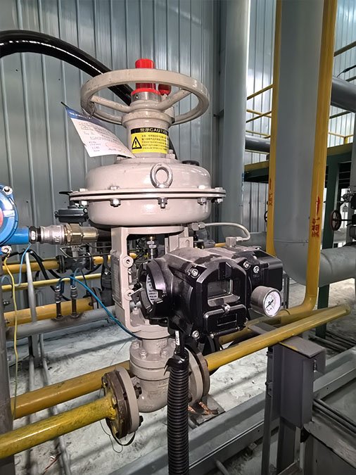漂浮炉的空气和天然气小流量调节应用:气动金属单座调节阀,带应急手轮,带智能普通型和隔爆型定位器。